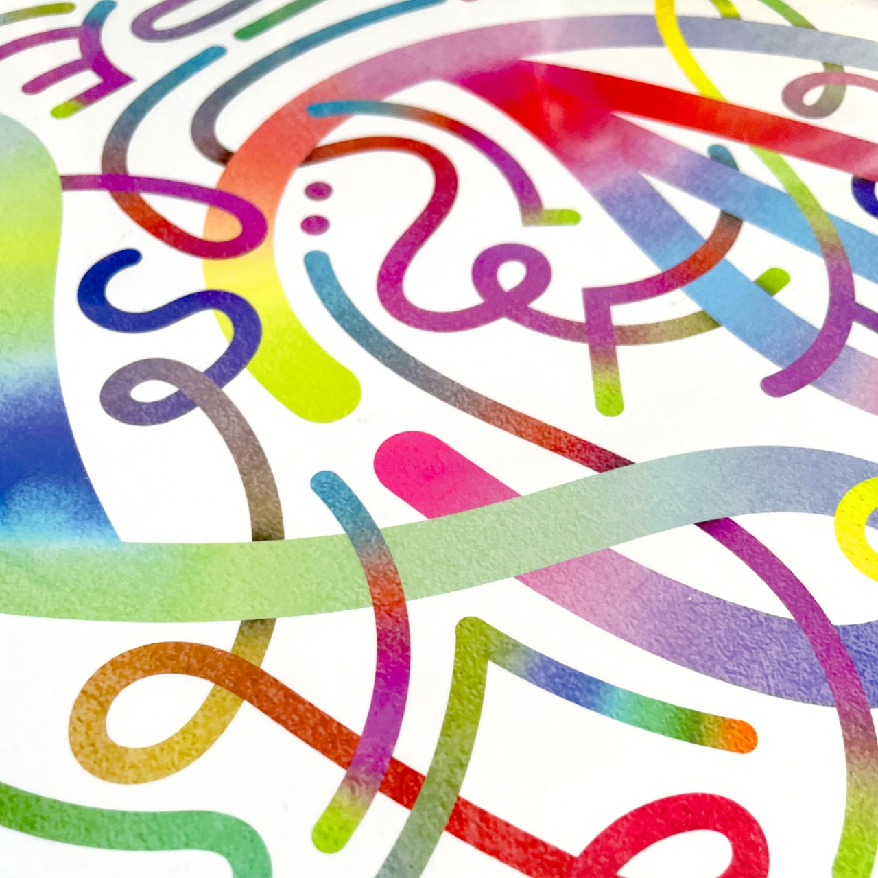 自由に動く線は、もつれ、重なり、形を生み出しながら、やがて意味を帯びていく。